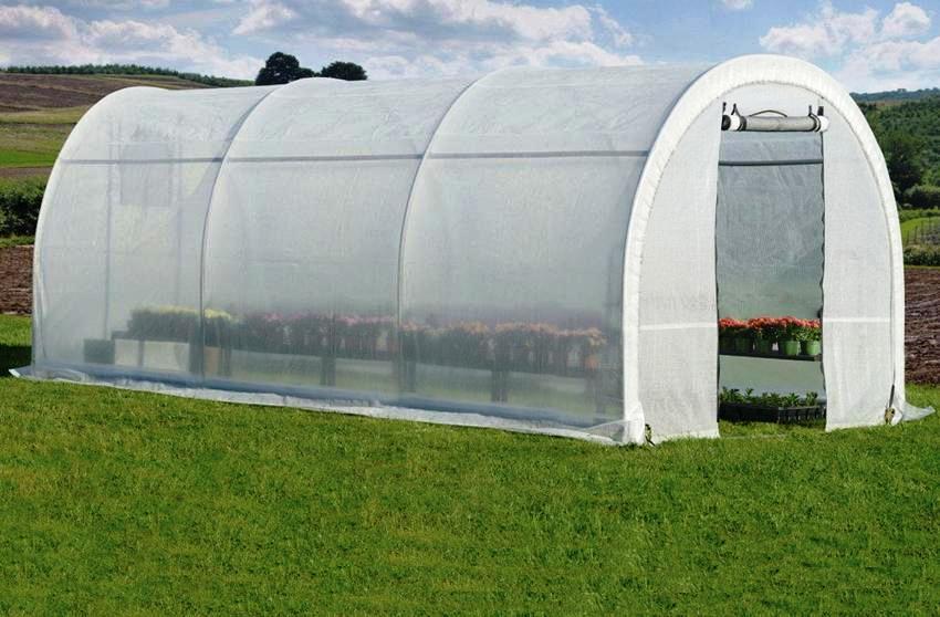 Greenhouses made of agricultural fabric are widespread. They are actively used for growing early vegetables. You can buy a spunbond greenhouse. It consists of arcs and the canvas itself, into which the arcs are threaded. The length varies from 2 to 15 m. The density of the fabric is different, it is possible to choose at will and in accordance with the goals and climatic conditions.