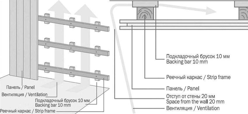 There are two possible ways of fastening: on an adhesive base or on a crate. They use mainly the second option, since it is he who allows you to hide the existing communications, and also not to worry about dismantling the previous coating. In the case of using glue, the prepared surface should be perfectly flat and smooth, which is not always possible.