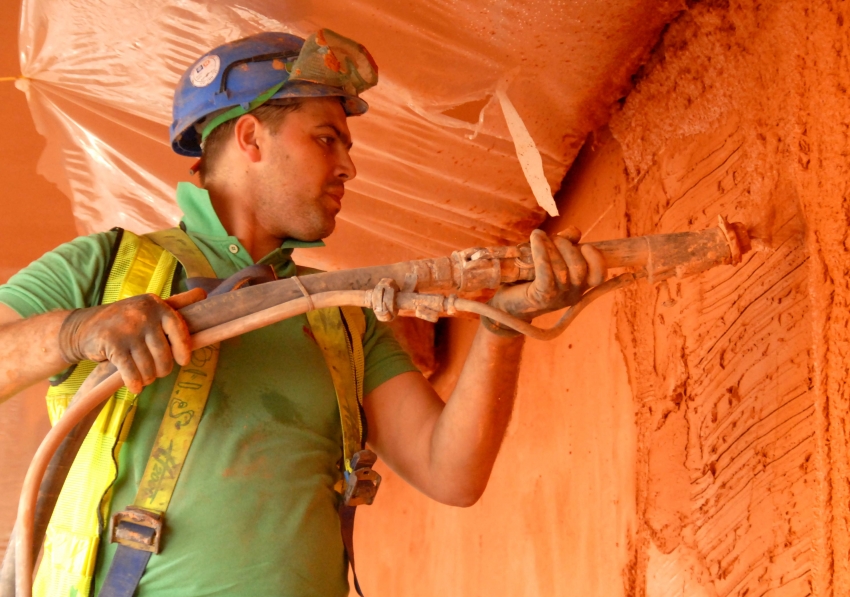 The nozzle of the machine should be as close to the wall as possible. It should be strictly perpendicular to the base. The operator distributes the high pressure mass evenly. Here you should be extremely careful and careful so as not to lead to the formation of marriage.