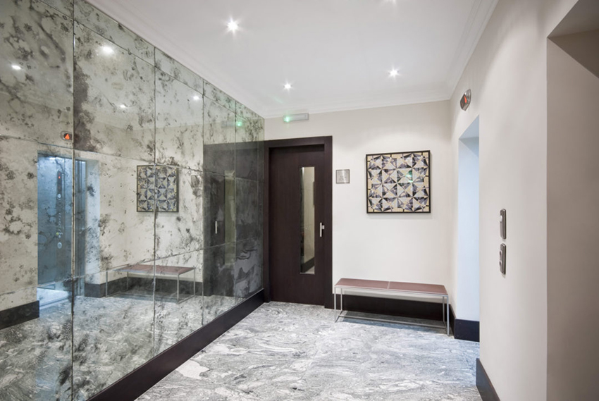 A good solution is a combination of areas finished with mirror elements with different degrees of reflection, which should be at different levels relative to the observation site.