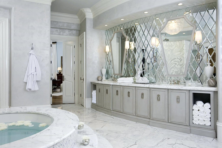 With the help of beveled mirror tiles, you can bring to life bold design solutions, thanks to which the room will acquire a stylish, sophisticated and luxurious look, and will delight the eyes of the owners for many years.