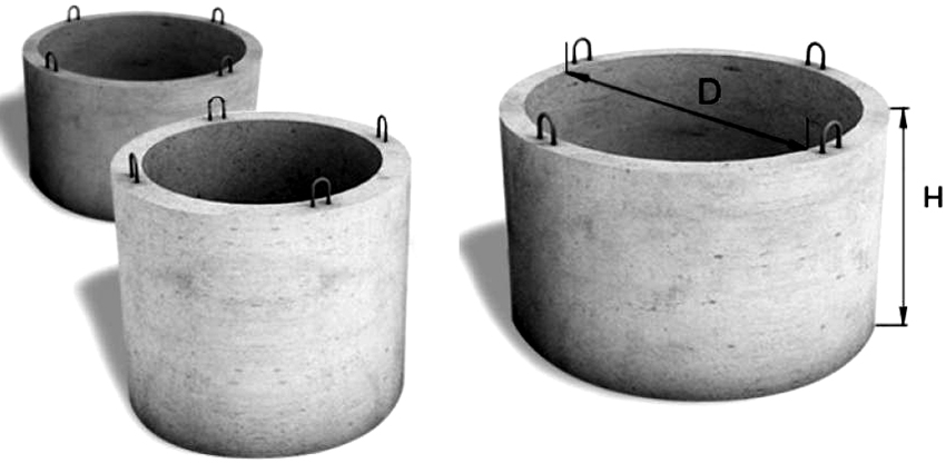 Important! Reinforced concrete rings are produced in the form of conventional products and elements, completed with a bottom and overlap of the appropriate size.
