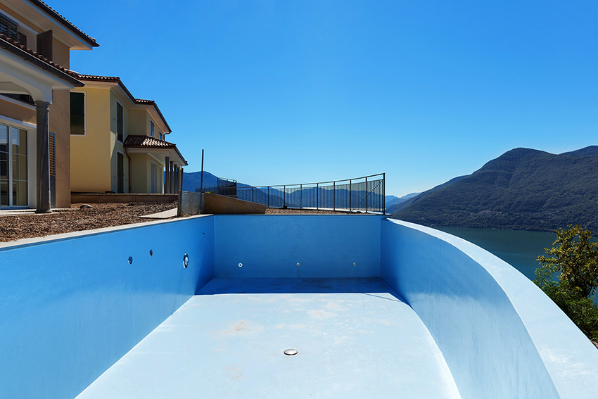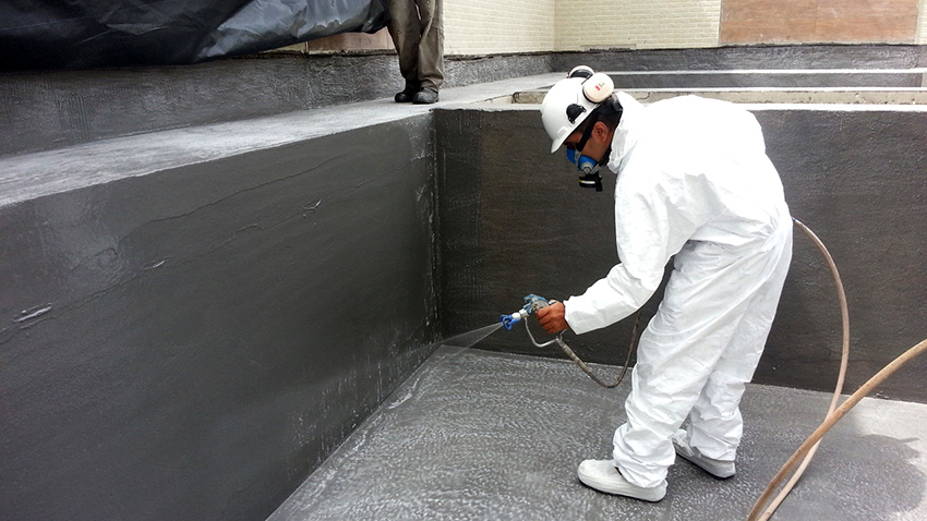 Swimming pool waterproofing with liquid glass is convenient to perform by spraying
