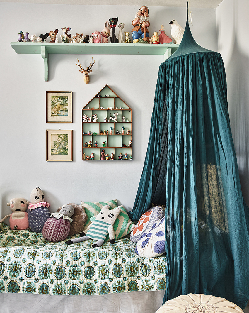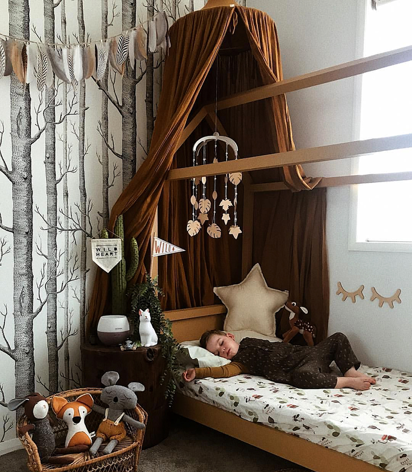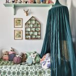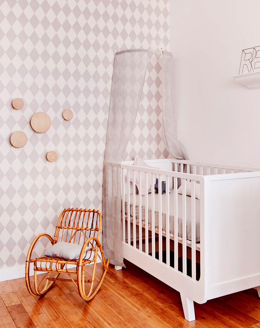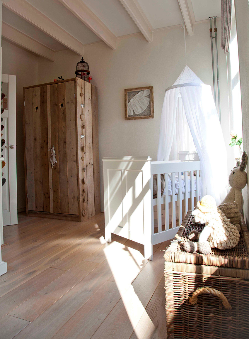 The canopy in the nursery can be styled to match the concept of the room