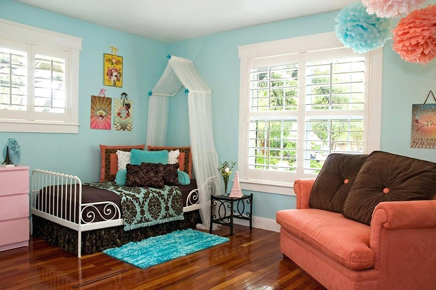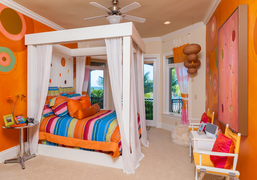 Unlike boys, who only need a canopy at an early age (before kindergarten), girls can sleep under a canopy much longer. These beds are popular with schoolgirls, including teenagers. The choice of a canopy on a bed for a teenage girl should primarily be based on her taste preferences.