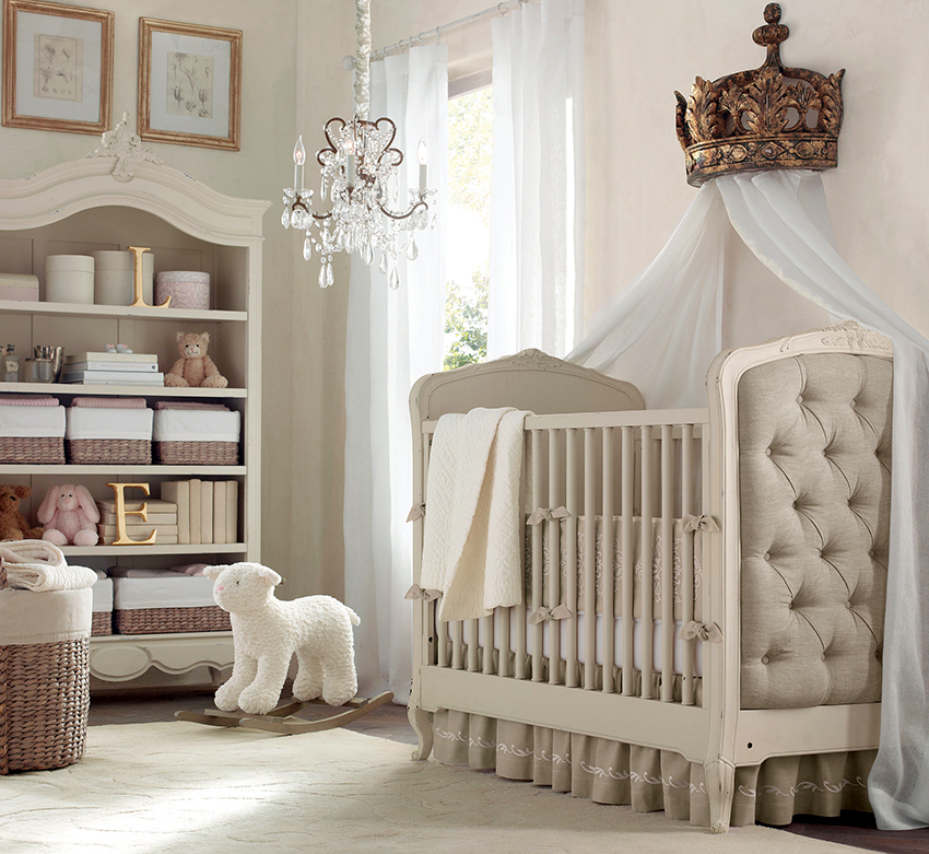 The crown-shaped canopy holder is suitable for a classic nursery