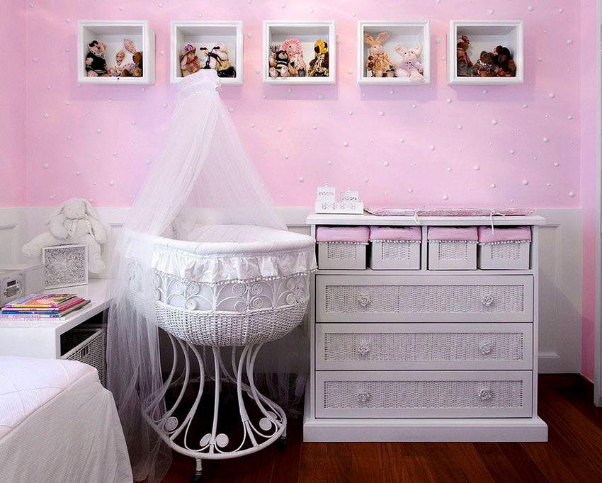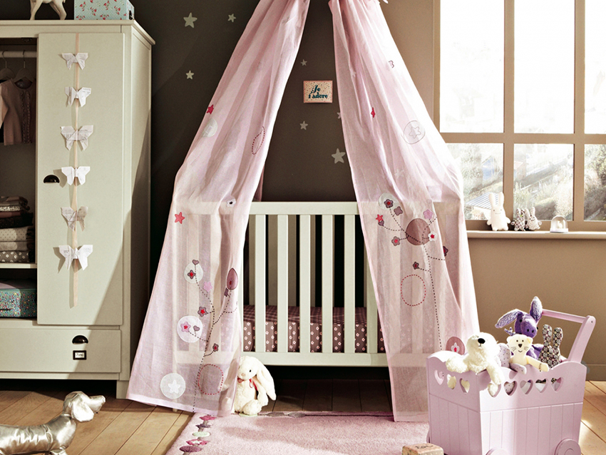 Most often, parents of little girls decorate the nursery in the "princess" style. This design is based on the use of pink tones. According to psychologists, when choosing a canopy for a crib, one should give preference to fabrics of light shades. Excessively bright colors can be overwhelming and annoying.