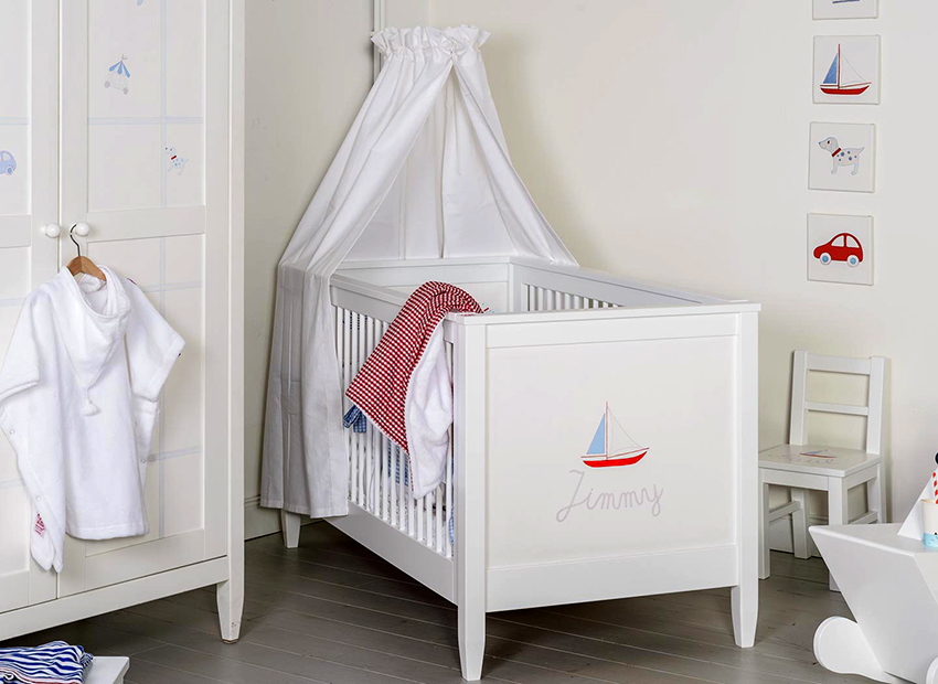 Design and photos of baby cots with a canopy for boys