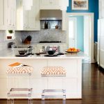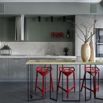 In modern directions, strict lines or streamlined shapes are welcomed, which is typical for bar stools for the IKEA kitchen. Products can have both neutral and bright colors. Combined designs will look appropriate here. For the direction of high-tech, you can use chrome-plated plastic or metal products.It will be possible to emphasize the restraint of style with gray, black or white bar stools.