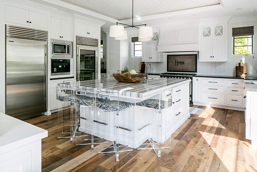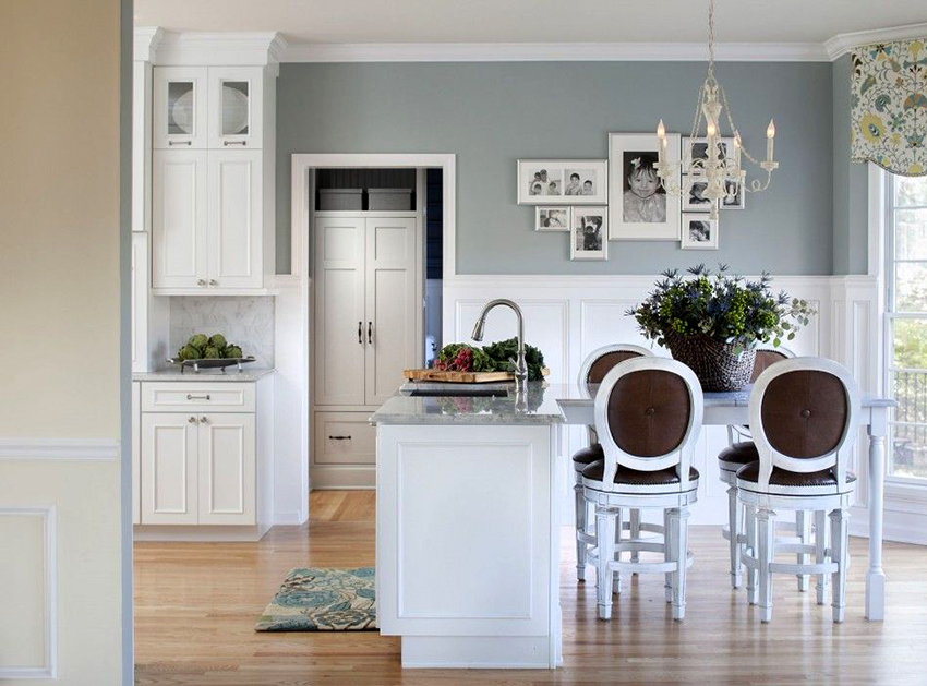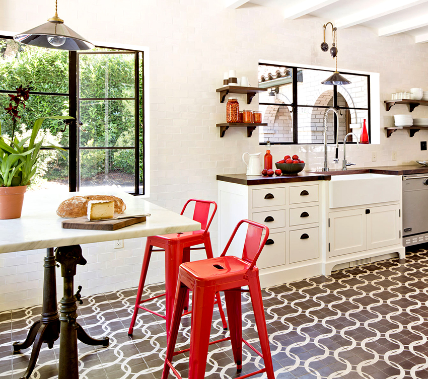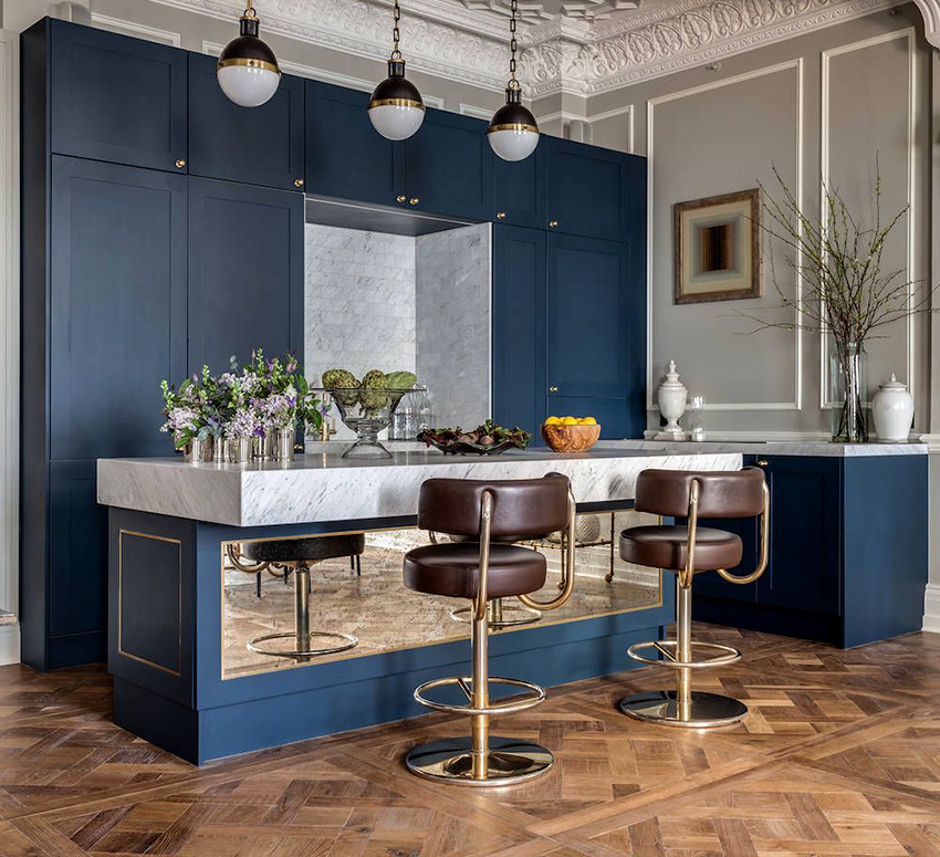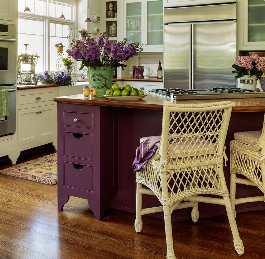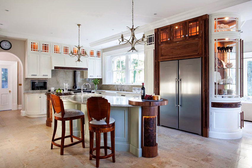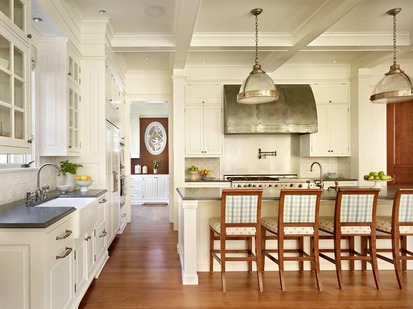 Classic cuisine is the epitome of luxury and naturalness. It is characterized by massive wooden or wrought iron bar stools with backs and armrests. The seats must be soft, with fabric or leather upholstery. Wicker stools made of wicker or wooden structures trimmed with simple fabric will fit into the Provence style.