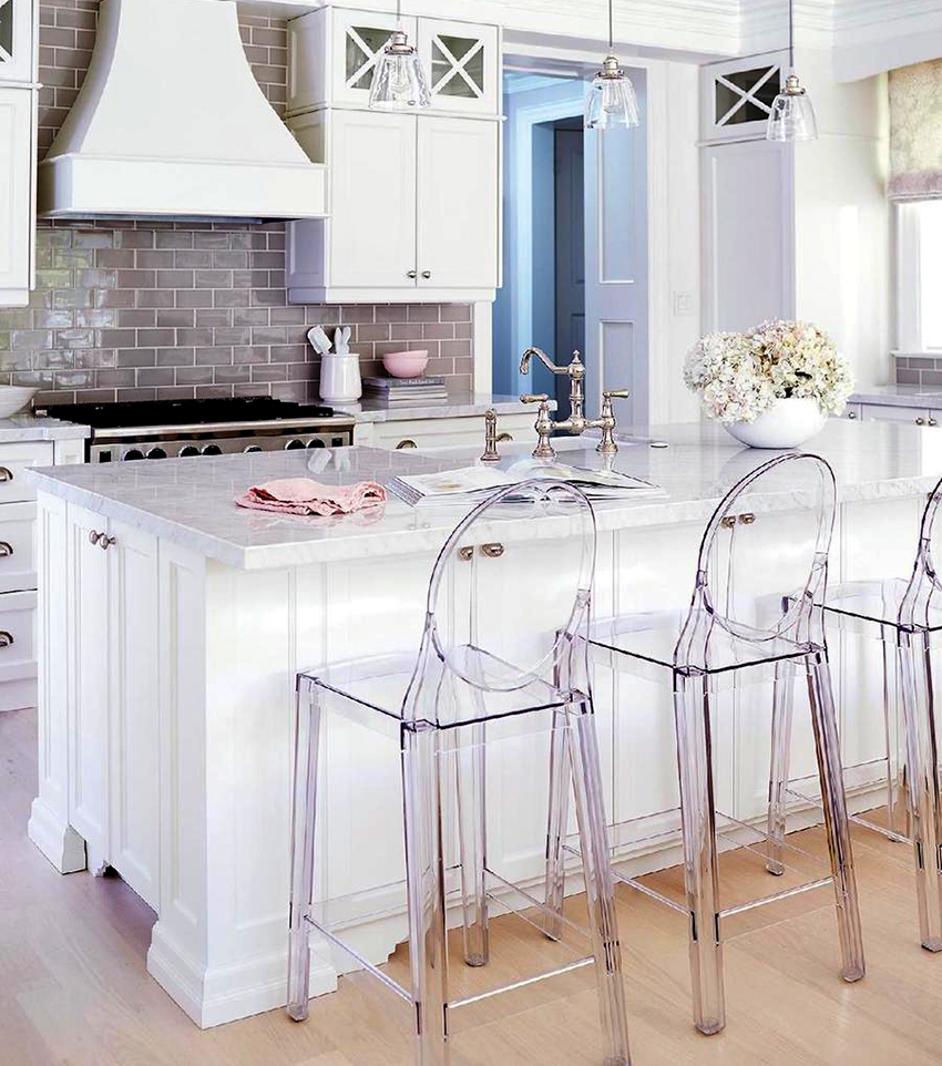 Plastic bar stools will look appropriate in loft, minimalist or hi-tech kitchens. For classical trends, constructions made of artificial material are unacceptable.