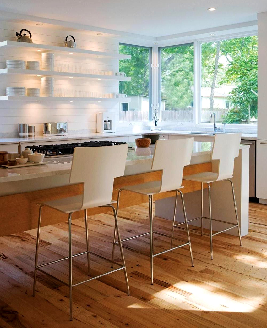 To create comfort and coziness in the dining area in the kitchen, it is important to choose the right bar stools. There are several nuances to consider here. The design is matched to the height of the rack. The type, shape, material of manufacture and design of the product should be determined by personal preference and the style of decoration of the room.