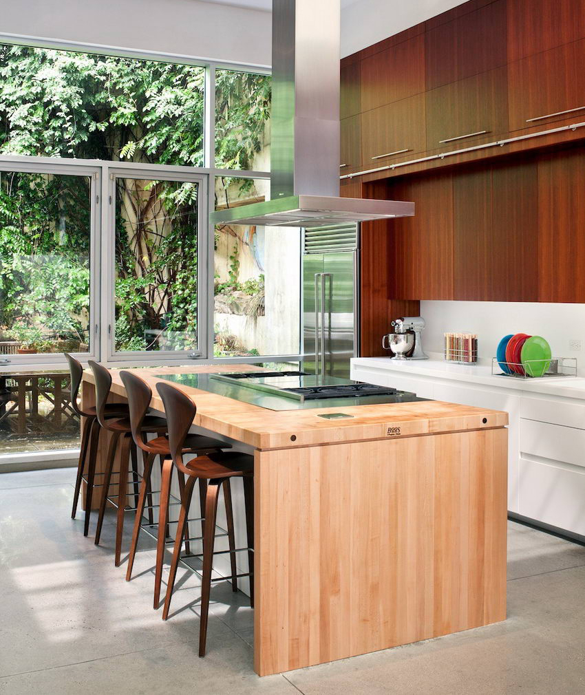 Most often, stools are made of wood, due to which they have a stylish appearance. However, this design option is inconvenient for long gatherings, since the back quickly gets tired. This is an uncomfortable alternative to traditional dining chairs.