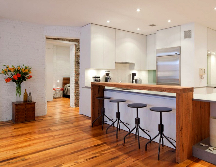 Wooden bar stools are the most preferred for most room interiors. The kitchen, equipped with wooden furniture, will look stylish, luxurious and presentable. A warm and cozy atmosphere will reign in it. The material is characterized by strength, environmental friendliness, reliability, durability and high cost. Thanks to the special structure of the wood, you can create original versions of chairs of different palettes.