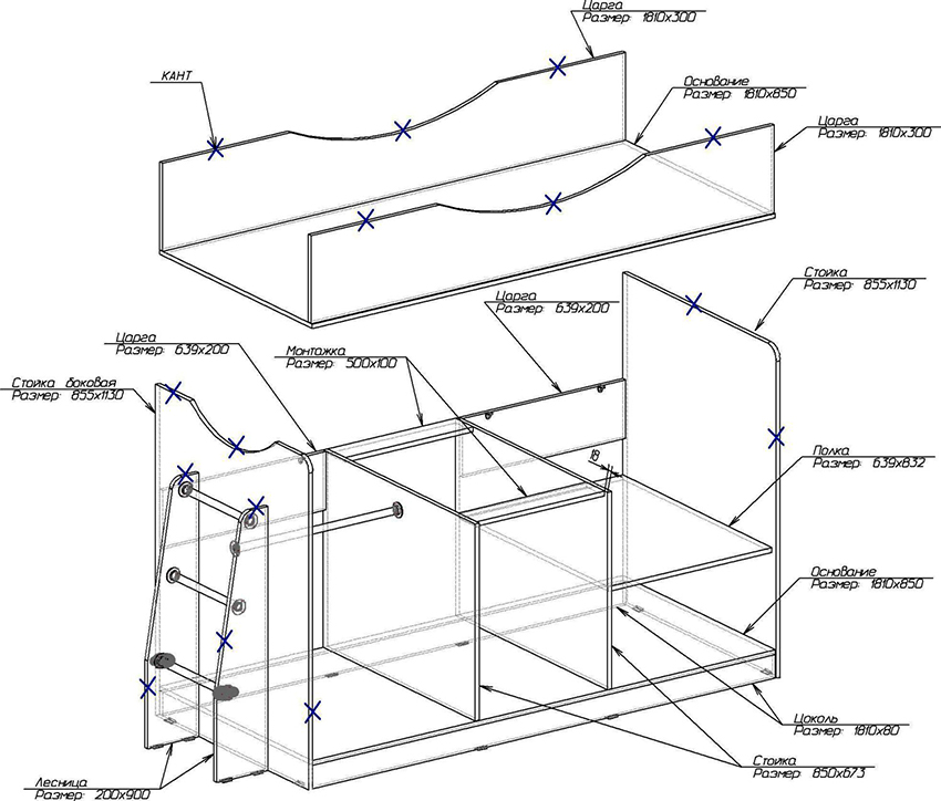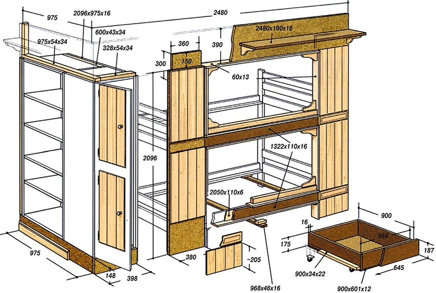 Diy bunk bed: assembly steps for different design options
