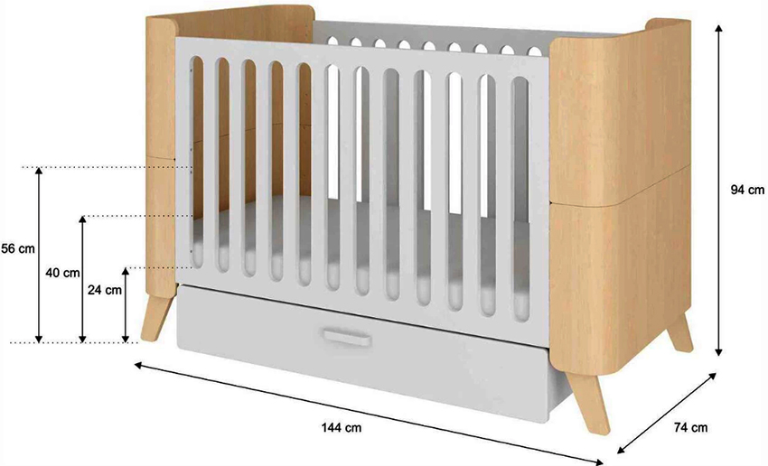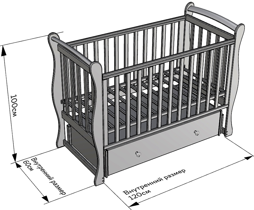 Crib dimensions depending on the type of construction