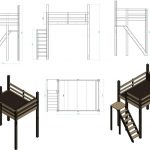 There are several types of loft beds. The structure can be located on four supports, attached to a wall or ceiling. The first option is the easiest to manufacture. The stock is made of solid wood. For its production, you will need a glued or calibrated board with a section of 40 mm, a bar of 50x50 mm, planed strips 35 mm wide and 10 mm thick.