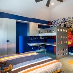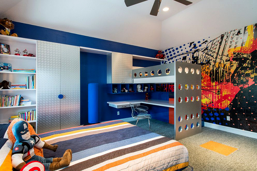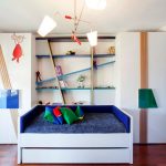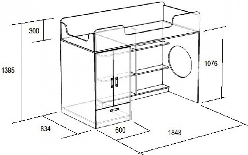 In the free space formed under the do-it-yourself loft bed, you can fit a spacious wardrobe. Its doors are best placed on the side of the structure. The second wall in this case will be an additional fulcrum. In the remaining free space, you can install a rack with open shelves or a desk. Children's beds with drawers are very popular, which fill the lower space under the berth.