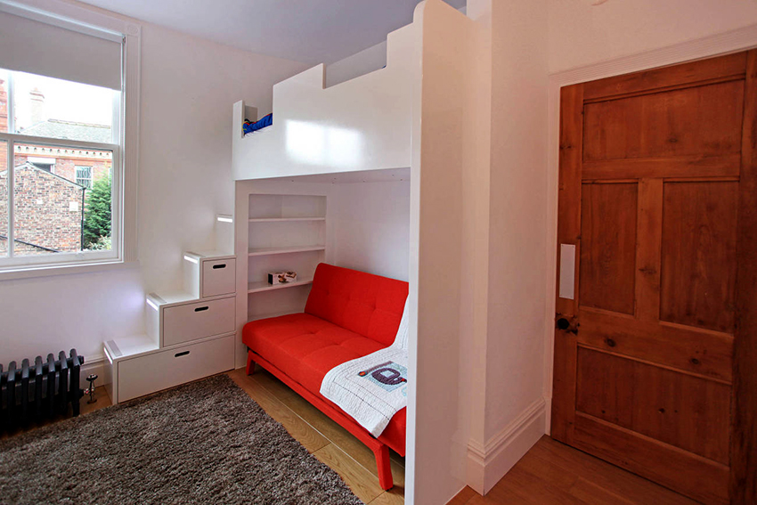 - bed for a child should have high functionality, which is expressed in the presence of drawers, shelves and niches.