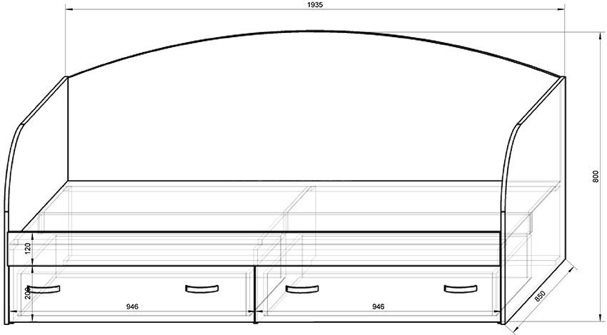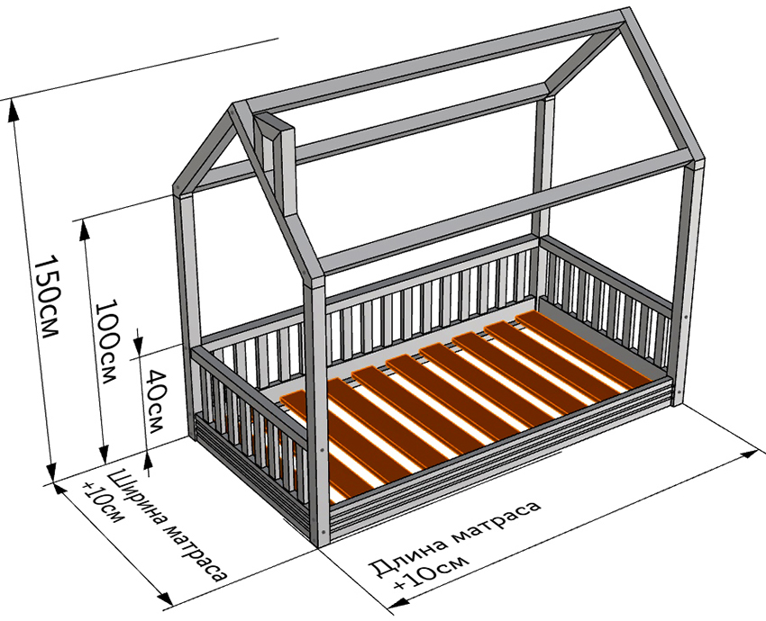 The structure of the structure for the child includes a base and backrests, which is clearly shown in the drawing of the bed. The width and length of the product is determined mattress dimensions... The bottom of the bed should be no more than 35 cm from the floor, so that the child can easily climb onto it.