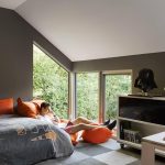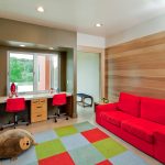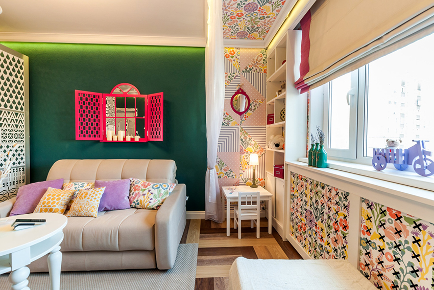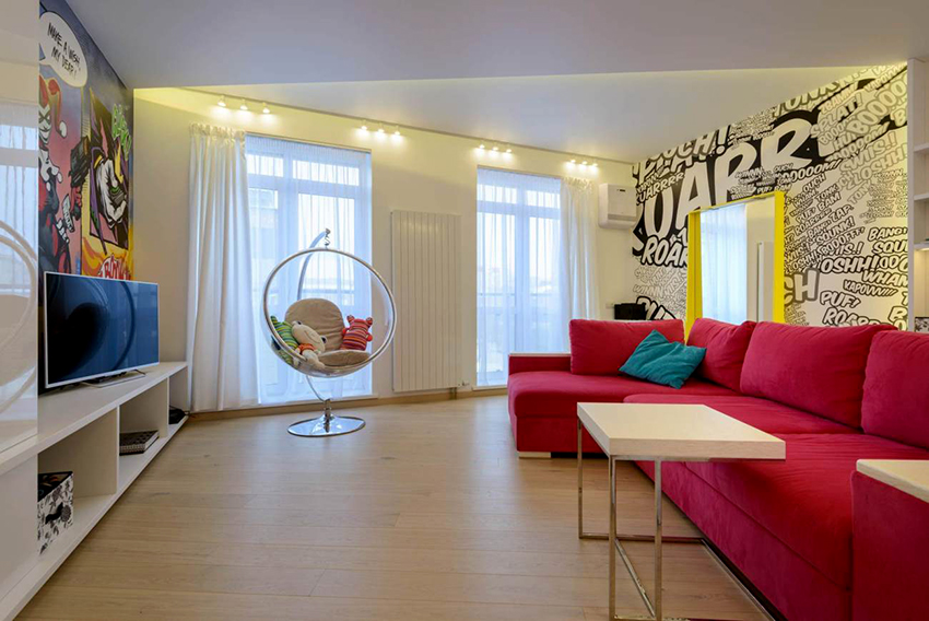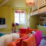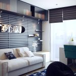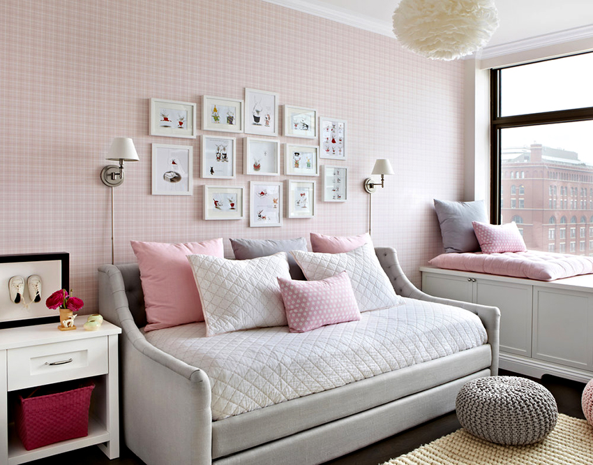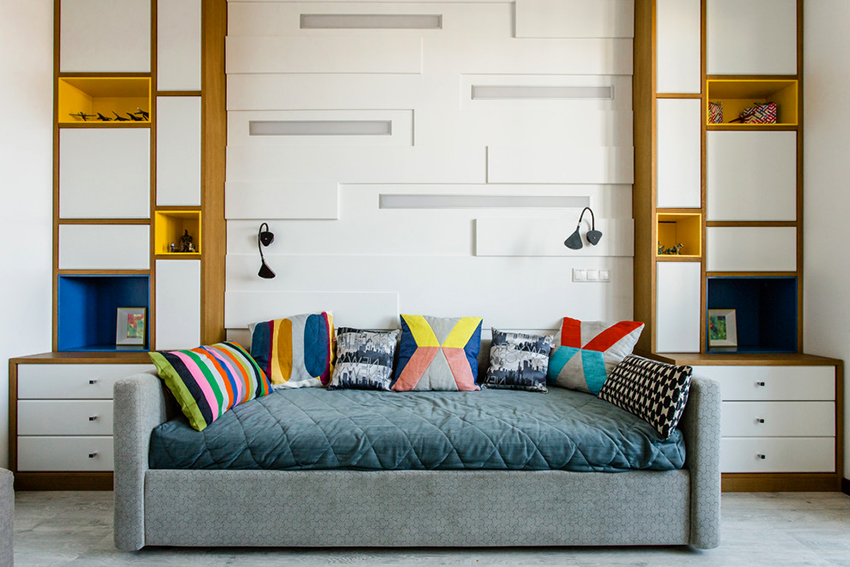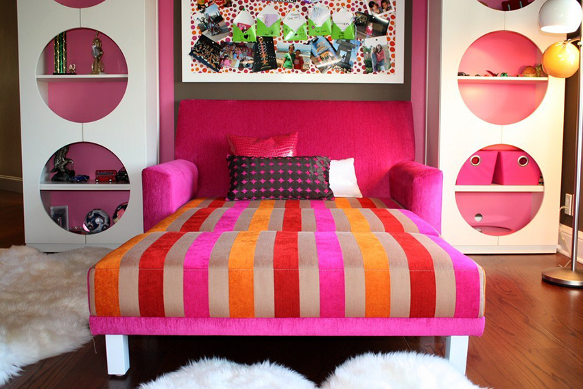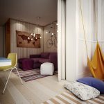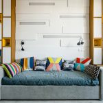 The “accordion” sofa bed is a retractable type of furniture. The berth is formed by three elements: two backs and a seat. The width of the unfolded structure is between 120-195 cm. Such a sofa is installed close to one of the walls. All types of sofa beds for a nursery can be found in a selection of interesting photos.