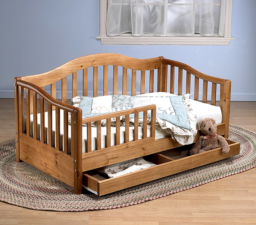 It is essential that the baby bed is reliable and safe to use. The structure should be free from sharp corners, protrusions, recesses, and also have an even surface of all components. Beds for small children and berths of the second tier are equipped with protective fences.