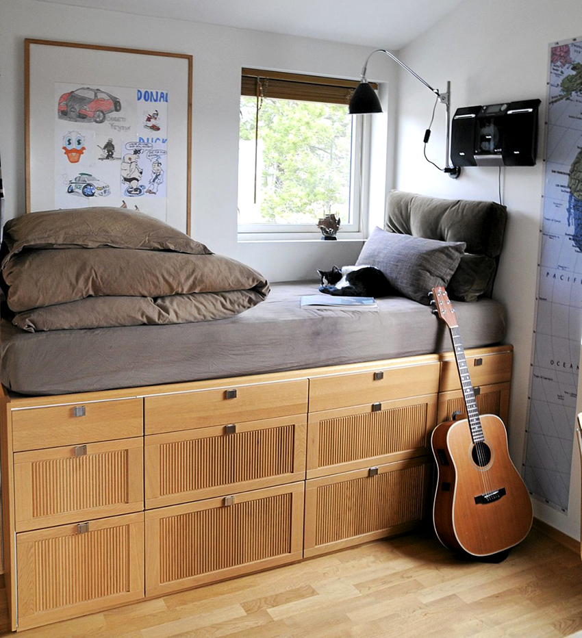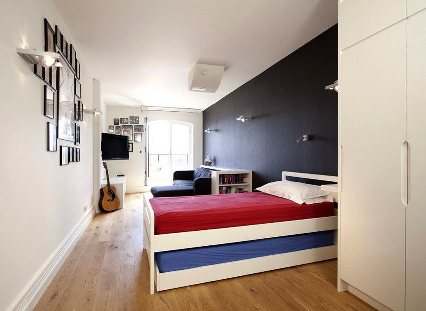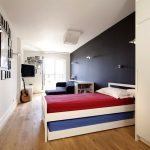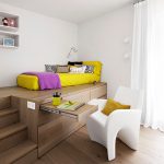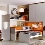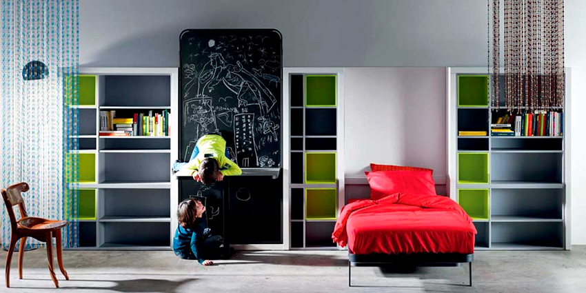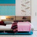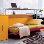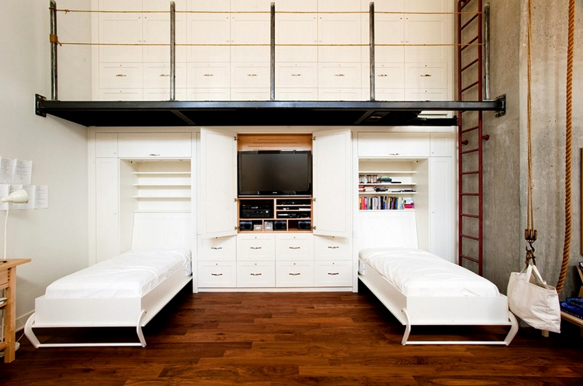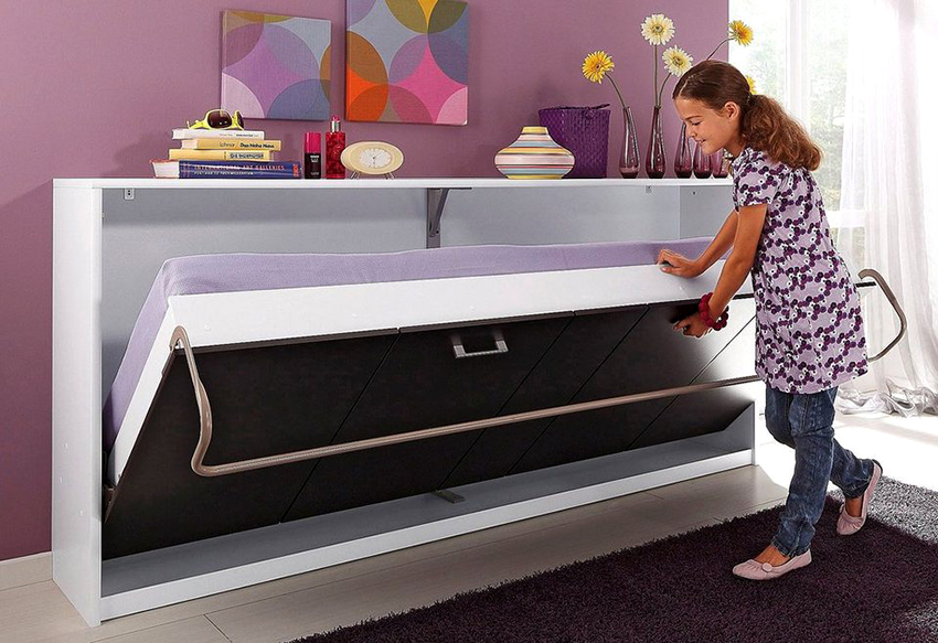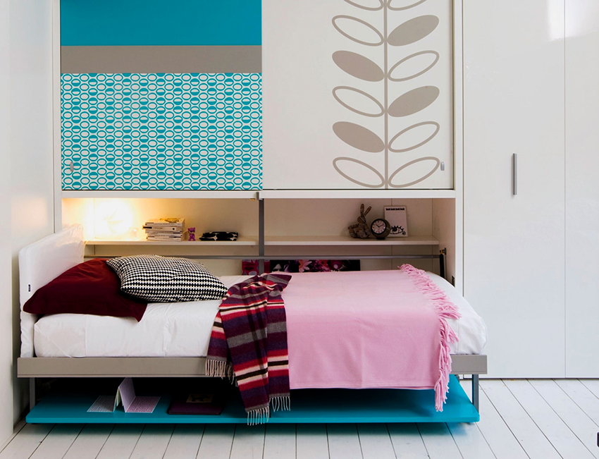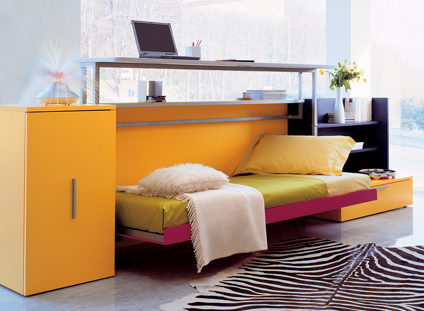 For a student, you can purchase a children's bed-table, in which a single bed is combined with a writing or computer table. There are several design options. The table top is retractable and hides under the sleeping place at night. A full table can be placed under the bed. An interesting model is a wardrobe-table-bed, in which the base of the bed is retracted into the wardrobe, and the table top takes a horizontal position.