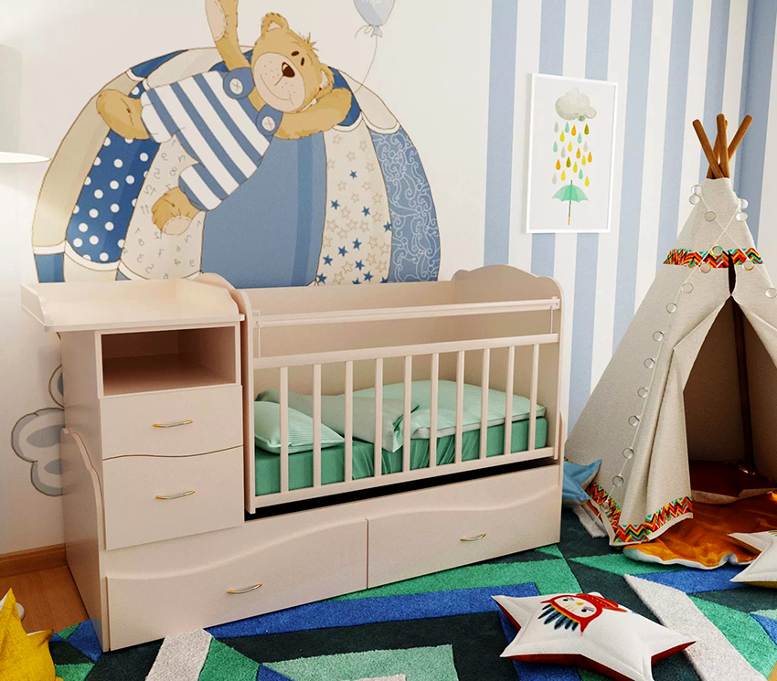 When choosing a baby bed, you should consider the functionality of the structure. Preference is given to models equipped with drawers for linen. The product must fit into the overall interior of the room.