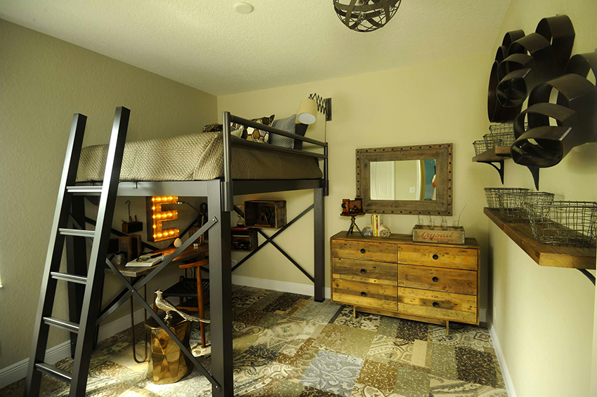 To rise to the second floor, the loft bed is equipped with a ladder, and it can be located anywhere in the structure. A retractable staircase with a drawer under each step is very popular (due to the high functionality of the product).