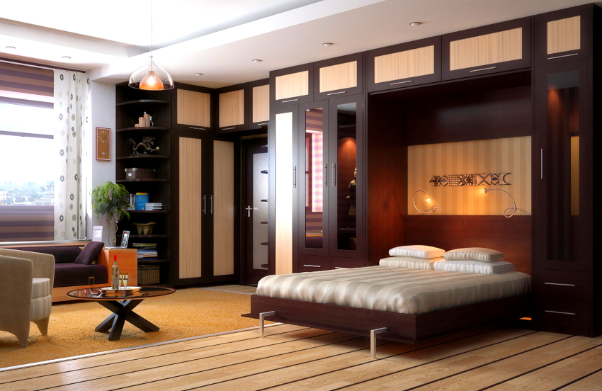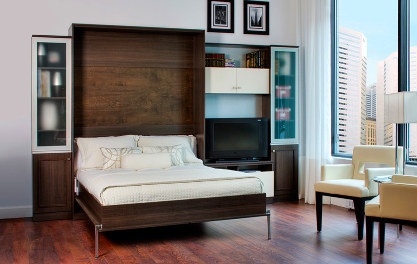 The main advantage of such furniture is, of course, its compactness. A convertible double bed for a small apartment saves a significant amount of space.