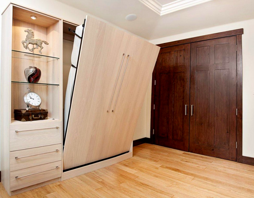 The classic option for such furniture is a wardrobe that converts into a bed. In addition to this solution, there are many modifications that have a different functional belonging. The modern market offers models that can be folded into tables, sofas, etc.