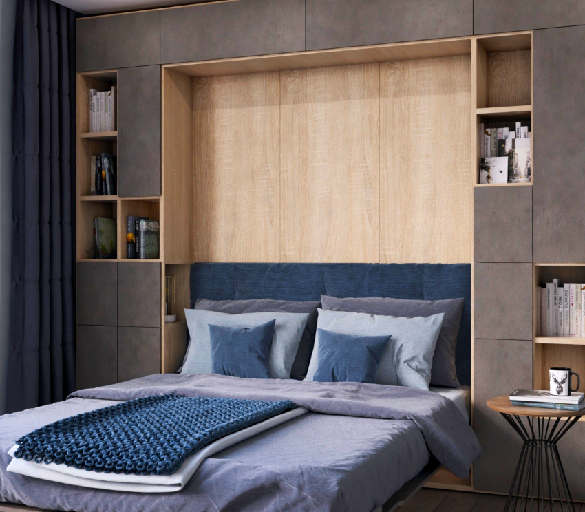 Thus, if there is a small bedroom, a transformer of this type will be an excellent solution that allows you to save useful space during the day.To find out what a similar design looks like in various interiors, it is recommended to carefully study the photos. Before purchasing such furniture, you must also familiarize yourself with the negative aspects of its use.