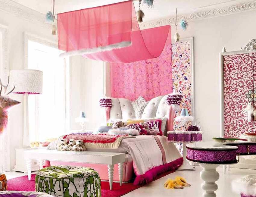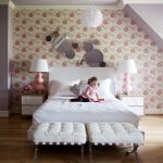 A decorative pattern on the wall (from the bed to the ceiling), for example, branches of blossoming sakura in an oriental style, a falling French rococo curtain or a baroque ceiling canopy, will look no less beautiful.