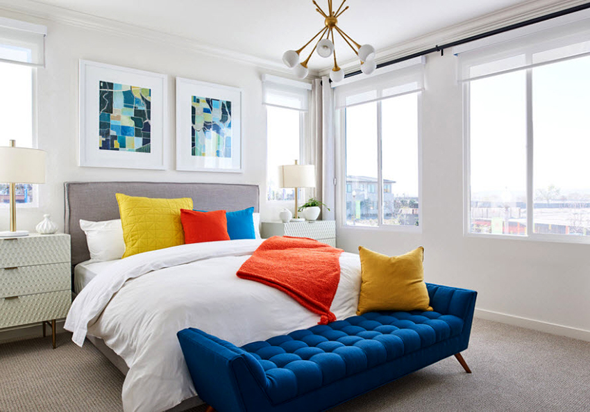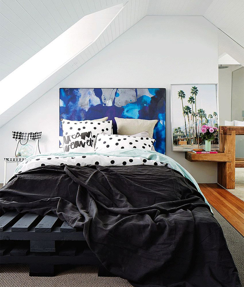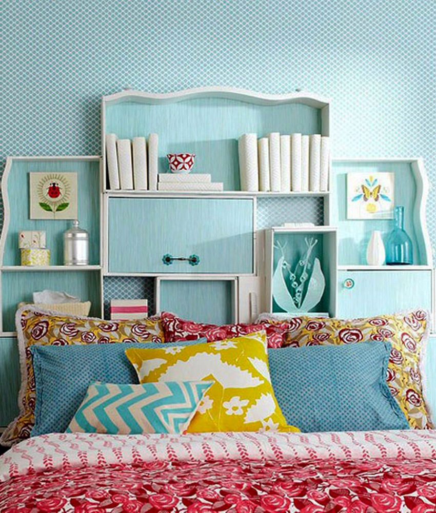 - pillows over the headboard are a simple but rather original way of decoration;