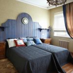 Premises in Provence style should be saturated with light and comfort, radiate romance. A room like this is a French provincial styling, so the headboards suggest a lot of textiles with floral prints in light colors. The furniture itself should be made of wood with an aged effect. Headboards made using painted boards or old doors will organically fit into this direction.