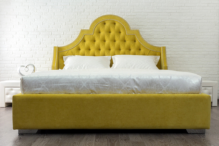 The final step is wrapping the product with a dense upholstery fabric. It is desirable that the upholstery fabric be present in other furnishings, for example, on ottomans or curtains, which will ensure the harmony of the interior and the bed with a soft headboard. Photos of design examples will help create an exquisite design.
