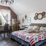 If the idea of ergonomics is pursued, then it is worth stopping at products in the form of wall cabinets and shelves. For a country-style bedroom where sustainability is welcomed, a bed with a wooden headboard is ideal.