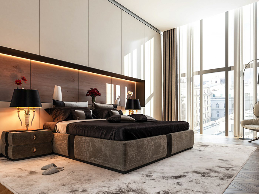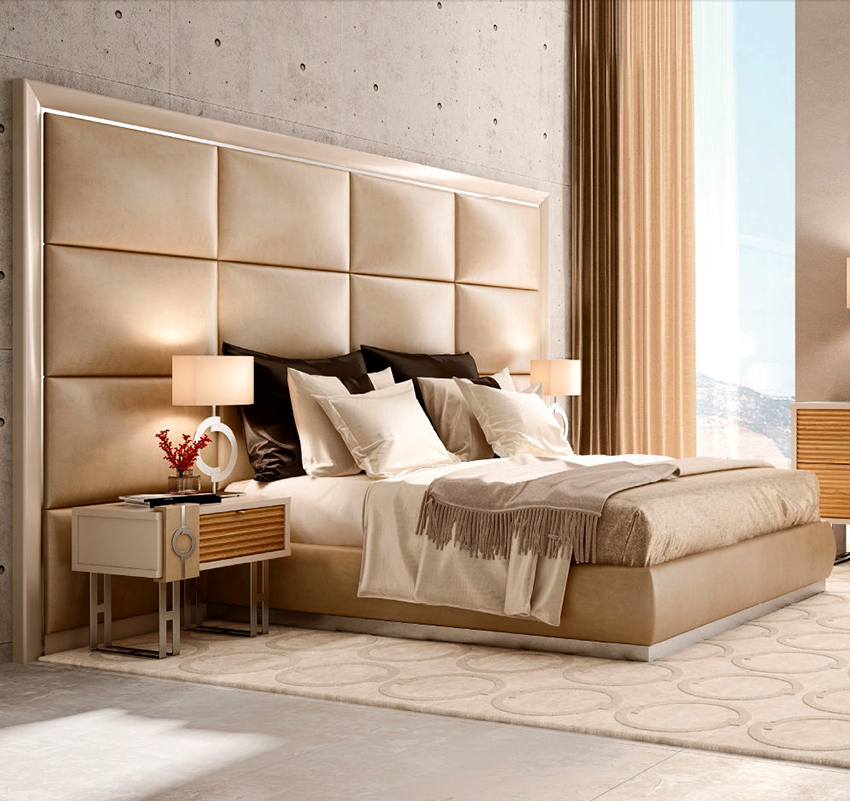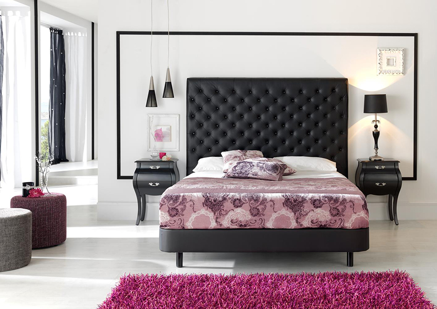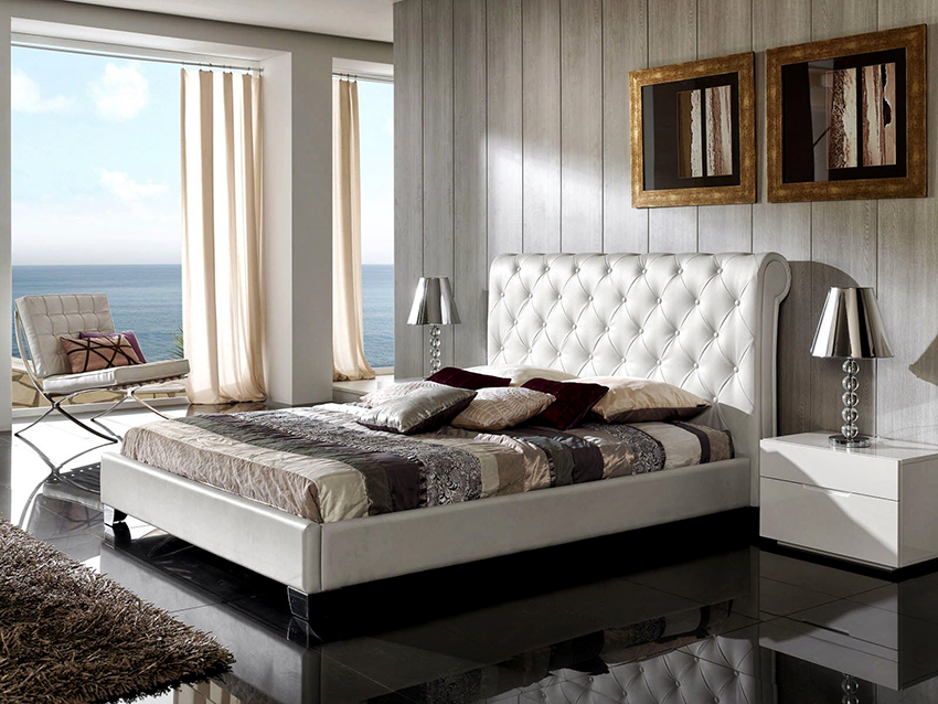 - a capitone carriage tie or a soft headboard made of leather, its substitutes, textiles and other materials is a win-win option for luxury lovers;