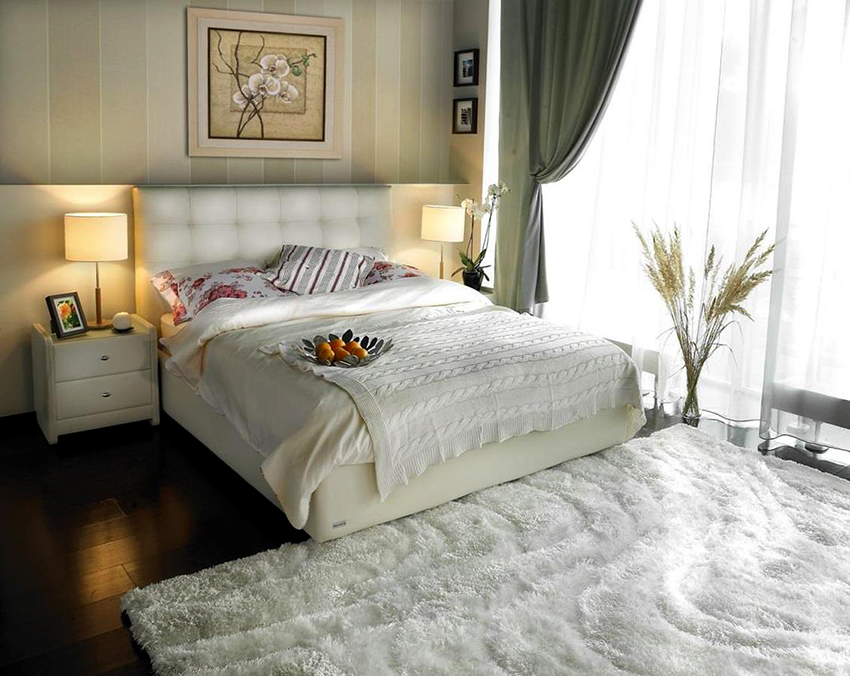 - almost any textile (from simple cotton, satin to exquisite plush and velvet) is quite often used to decorate beds, thereby bringing coziness and comfort to the atmosphere of the room;