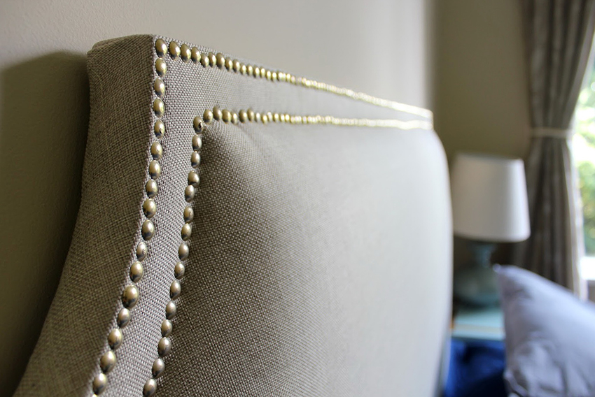 An upholstered headboard with a nail pattern is another popular way to decorate a bed. It is less labor intensive, but requires some training and labor costs. If you follow strict instructions, the process itself will not take much time, but you will be able to get an excellent result.