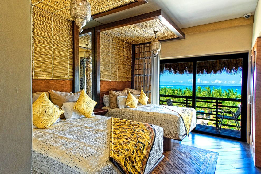 The Japanese style assumes the presence of a screen, fans, and the bed itself often has the shape of a podium. Furniture, which should be few in number, is made exclusively from natural raw materials of dark color. The headboard has a regular shape. Both hard decor and soft linings made of fabric with national motives are allowed.