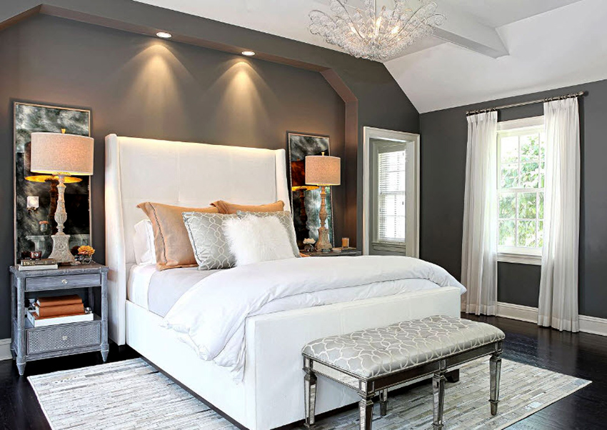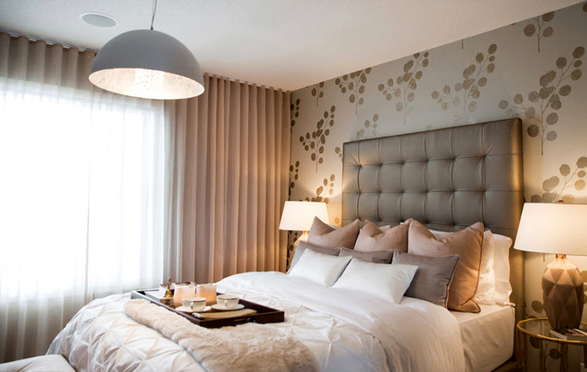 The bed is the main place in the bedroom where the main attention is focused, so you should be more careful about the style of the backdrop. Each style assumes its own subtleties and details, so we will consider some of them as examples.