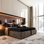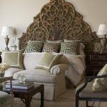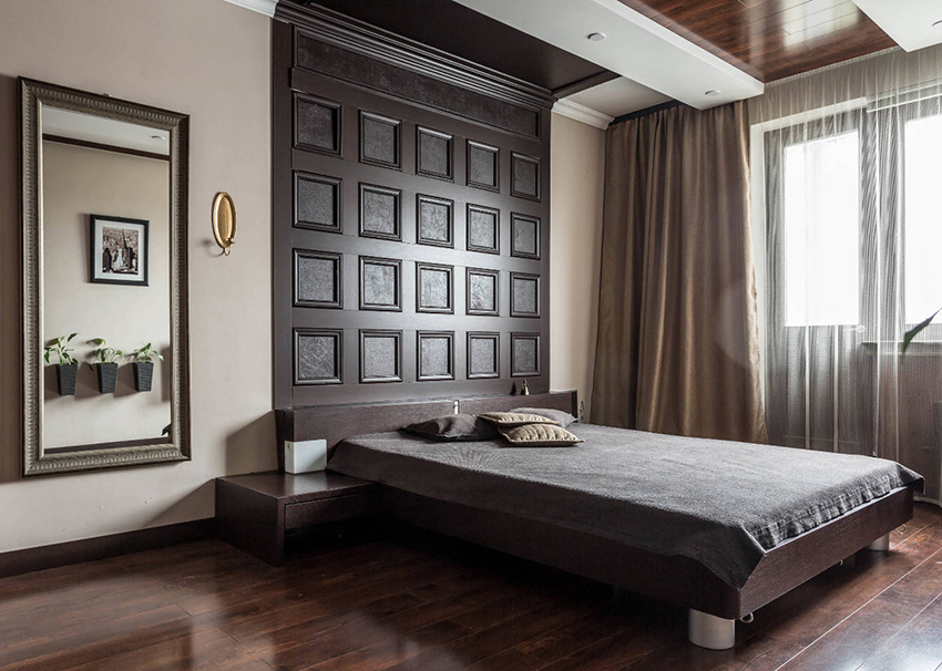 Making a bed with a high back from natural materials is encouraged. At the same time, not only wood is relevant, but also stone. These materials will help make the room more majestic. It should be noted that in a bedroom with high ceilings it is better to refuse a long headboard. It will also be inappropriate in a narrow room, as it visually narrows the room even more.