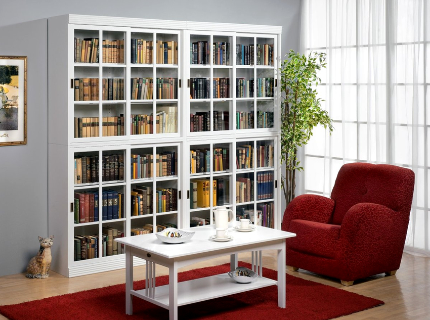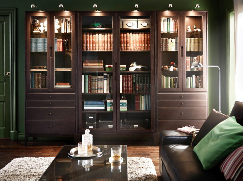 In connection with the era of digitalization, some people question the advisability of purchasing such a cabinet. To dispel them, you just need to familiarize yourself with the basic functions that this practical piece of furniture performs. In addition, after examining numerous photos of bookcases with glass doors, you can choose a product that will perfectly complement the interior.
