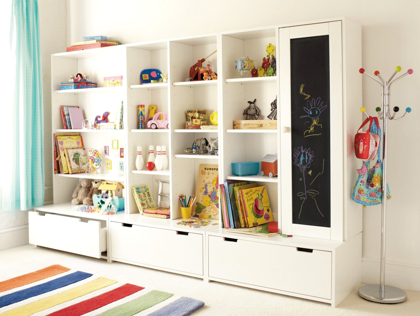 When choosing furniture for a children's room, in particular for storing toys and books, it should be borne in mind that it must correspond to the child's age.