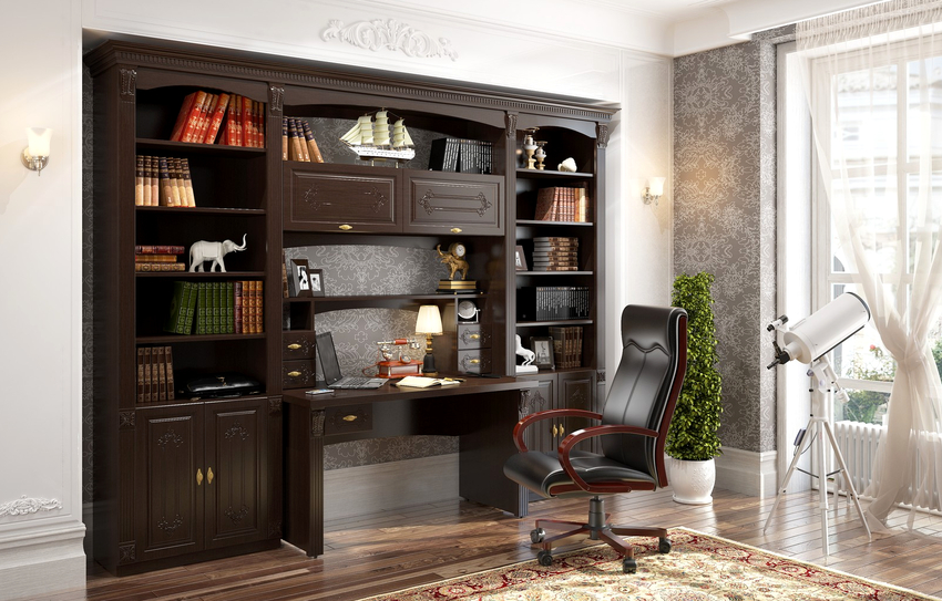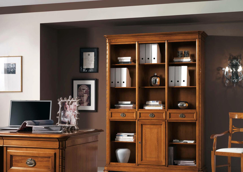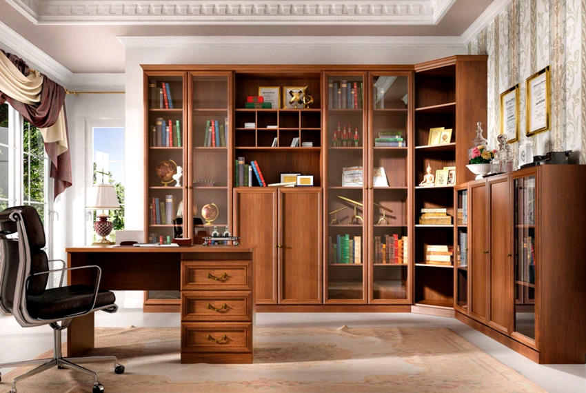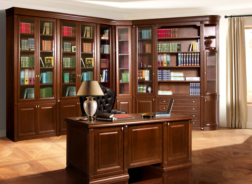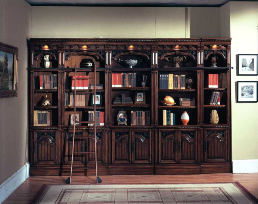 Classic structures for storing books have always been made of solid wood, covered with red or black varnish, decorated with original carvings, demonstrating the welfare of the owners and their excellent taste. Such beauty can still be found in antique shops today. However, modern models are absolutely not inferior to products of the past in terms of appearance.