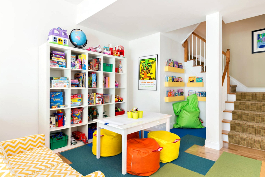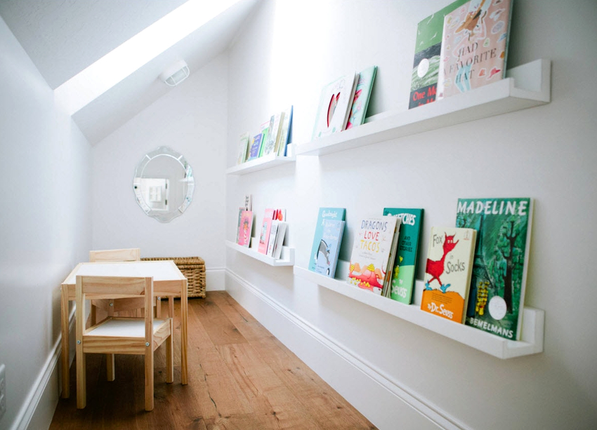 As for the room for the child, it is incredibly important to correctly distribute the furniture, and in such a way that the space does not turn out to be cluttered. If the area of the room is small, the corner-type shelving will be the best solution. This design will provide reliable storage of books in the nursery, as well as the child's favorite toys, leaving room for vigorous activity and creativity. Thanks to their compactness, racks are very popular.