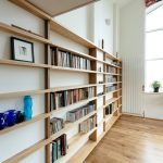 The height of the structures depends on the sizes of the volumes.If most of the library consists of collections of standard dimensions, the height of the shelf may not exceed 30 cm. But old volumes or art history albums require higher storage compartments.