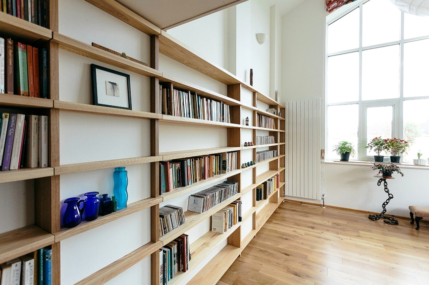 Depending on the configuration, there are the following types of wall-mounted bookcases: