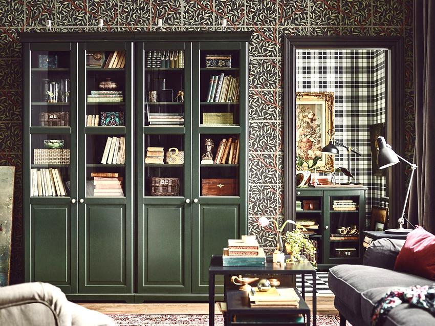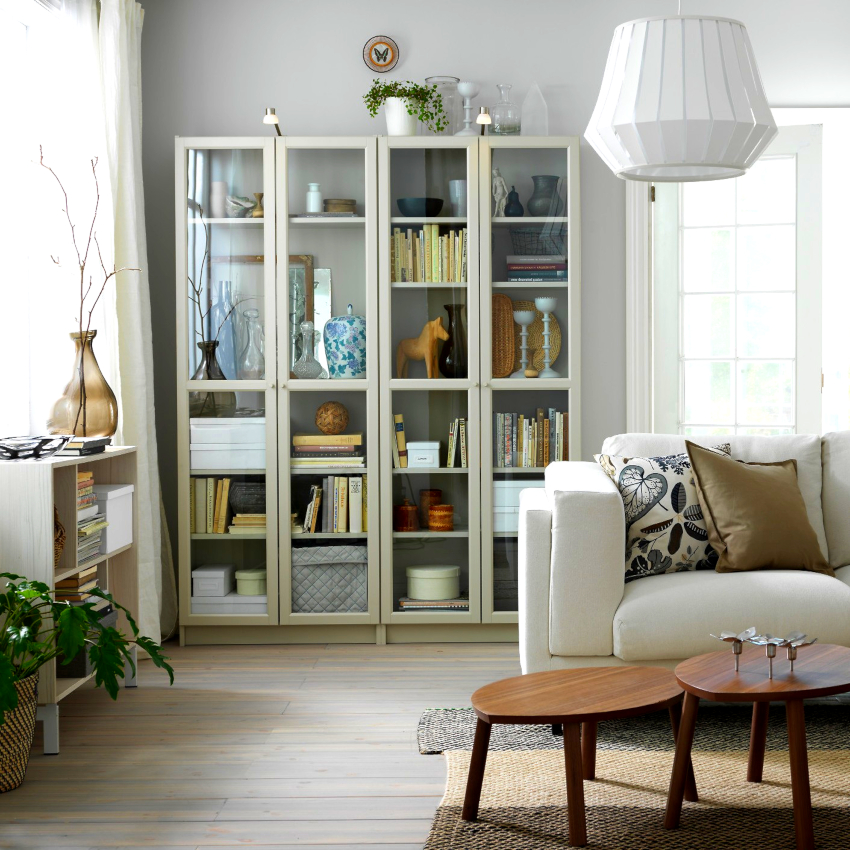 For example, the modest model of Billy's shelving, which has been produced since 1979, has not lost its popularity to this day. The presented design will perfectly complement the interior of a small-sized or one-room apartment.